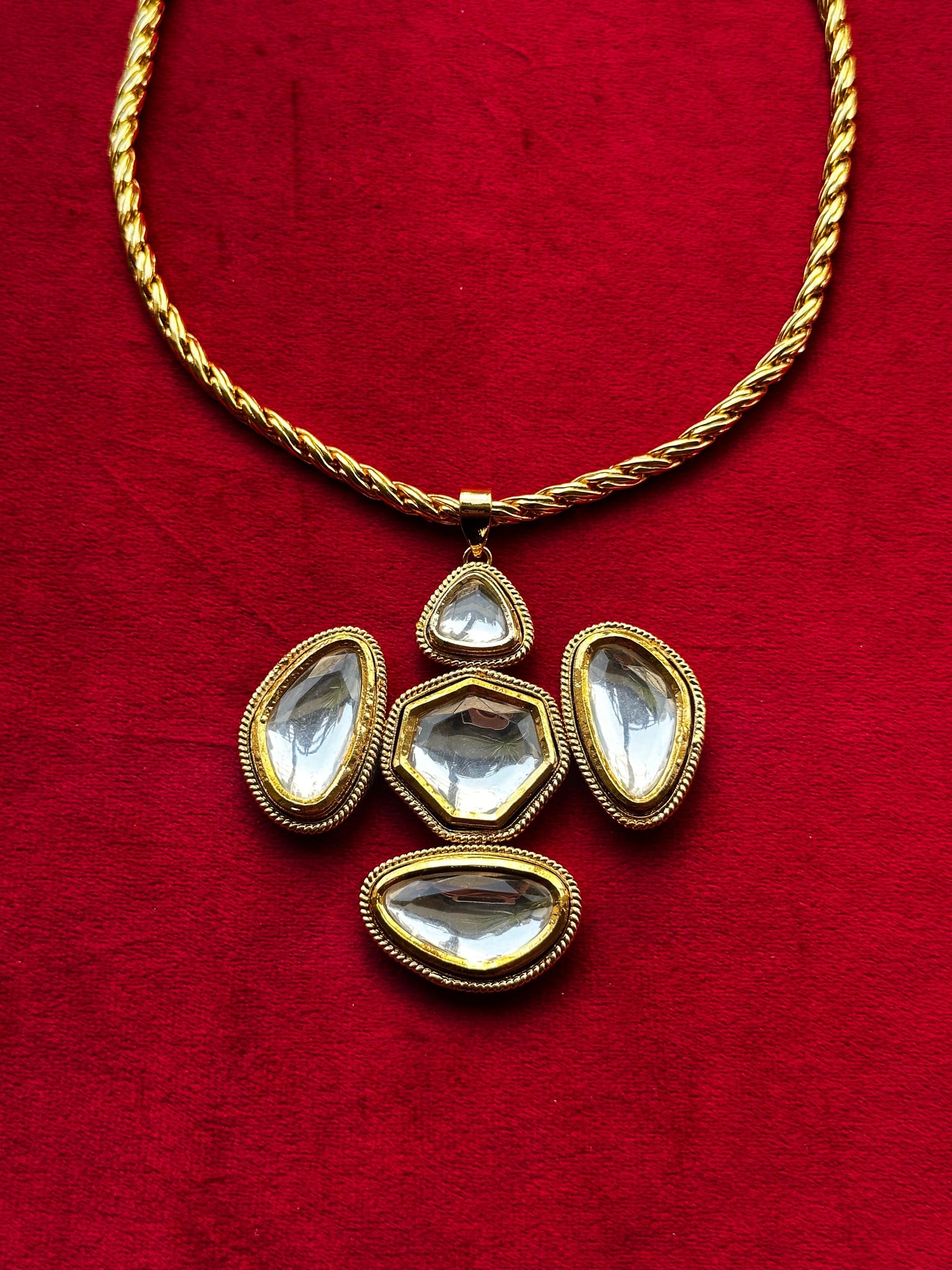 Glass Polki Plated W 22K in Gold & Silver/White Rhodium